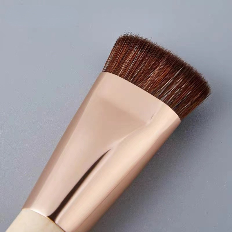 斜めにカットされた平筆タイプのメイクブラシで、頬骨に沿った自然な立体感を演出します。