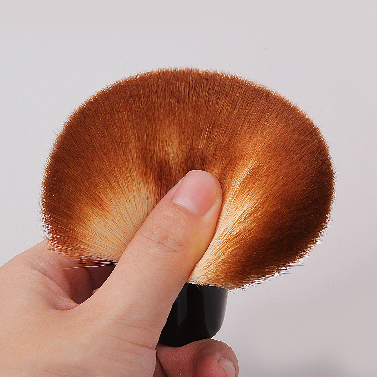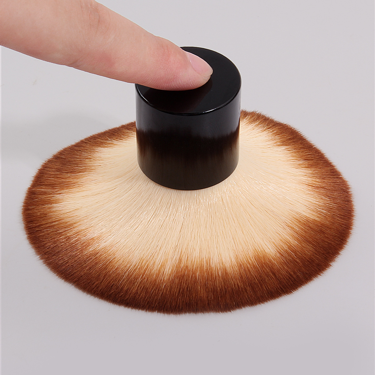 ふんわりと広がる毛先が特徴の丸型メイクブラシです。