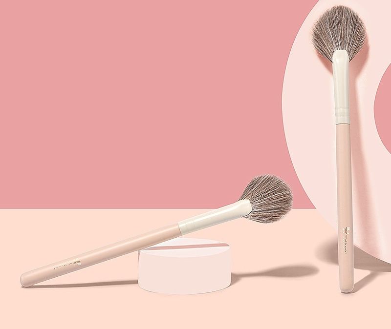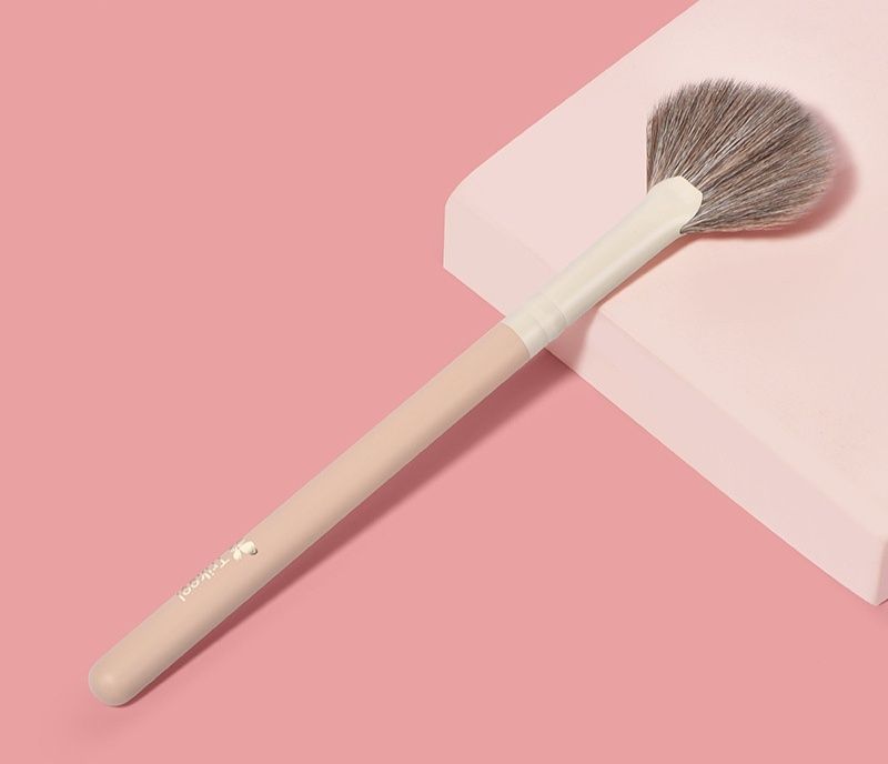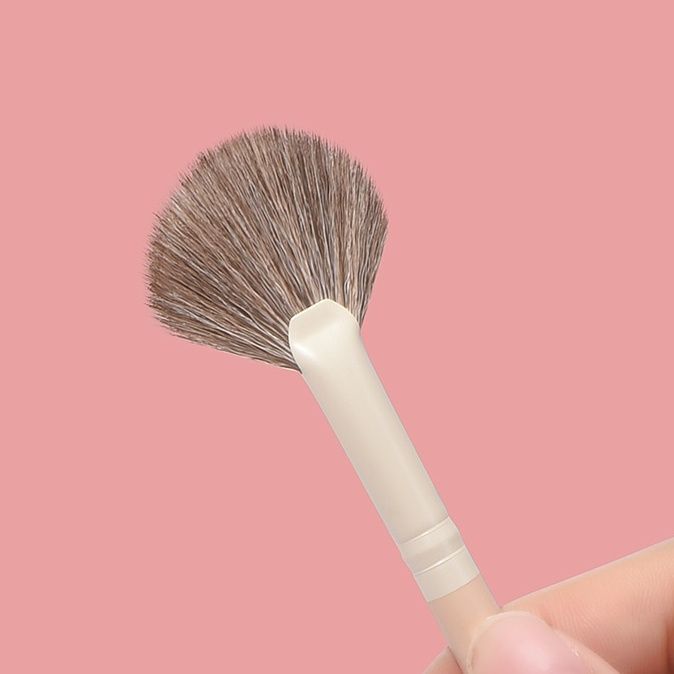 まぶた全体にアイシャドウを均一にぼかせる扇形タイプのメイクブラシです。