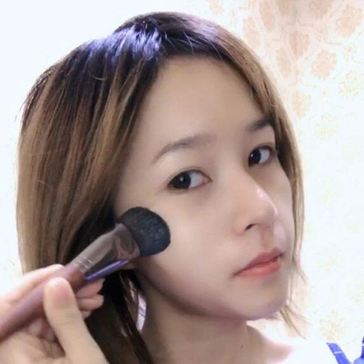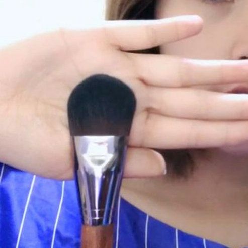 斜めにカットされた毛先が顔の凹凸にぴったりフィットし、ファンデーションを均一に伸ばします。